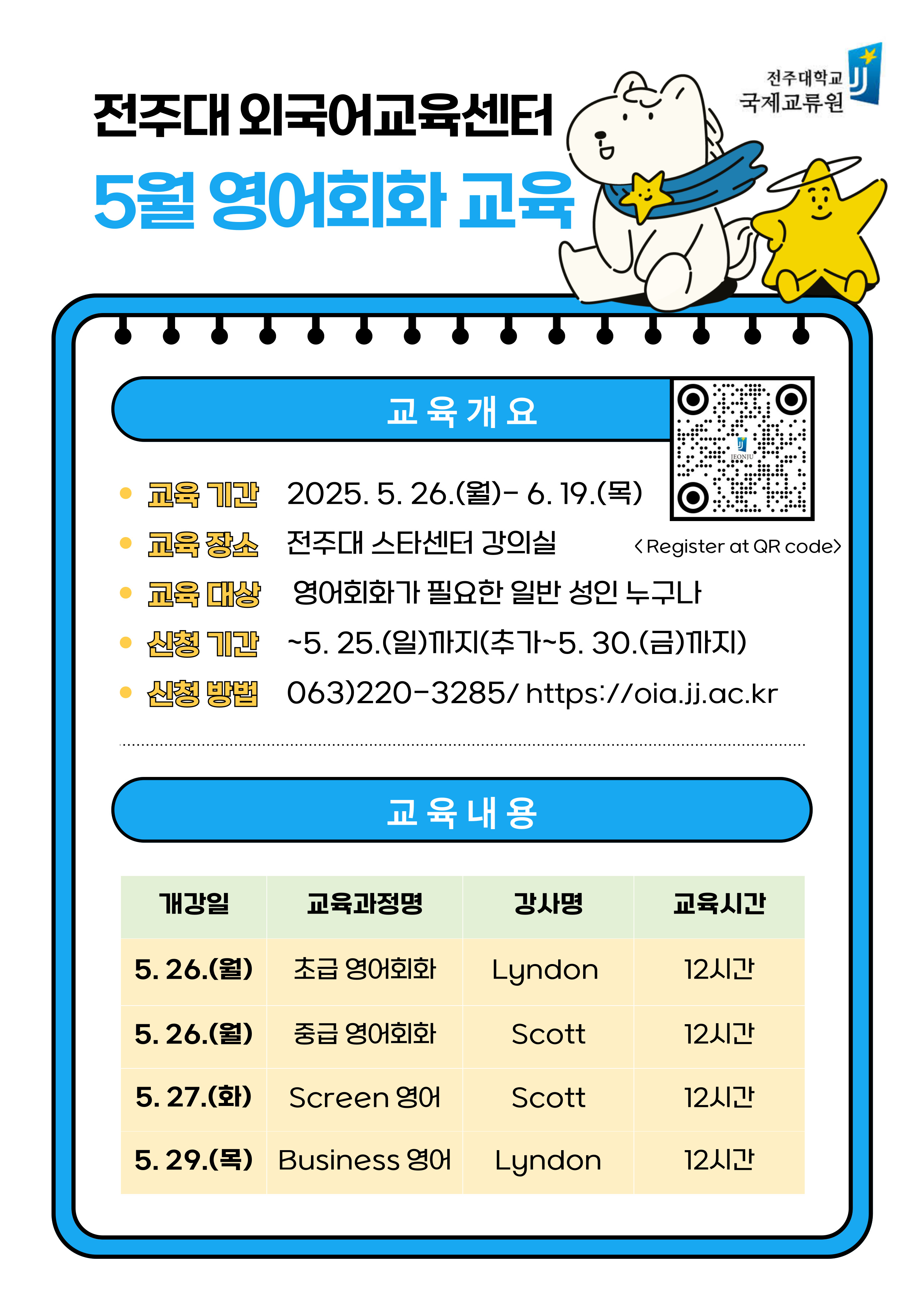 5 2025년 3차(5월) 성인반 영어회화 강좌 모집 신청 안내 FLEC 25-05-13 150   외국어교육센터 5월 회화 개강 안내 포스터.jpg
