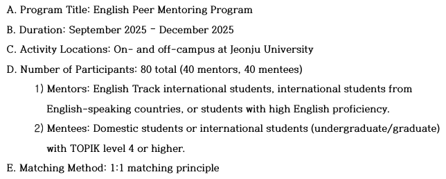 [피어멘토링]Information on the Peer Mentoring Program |