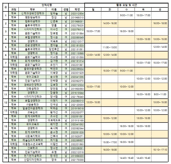 2023년도 2학기 JJ-글로벌 멘토링 추가 모집 멘토&멘티 매칭 결과