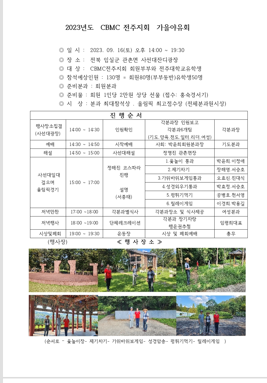 2023년도 지역사회 초청 유학생 가을 야유회 일정