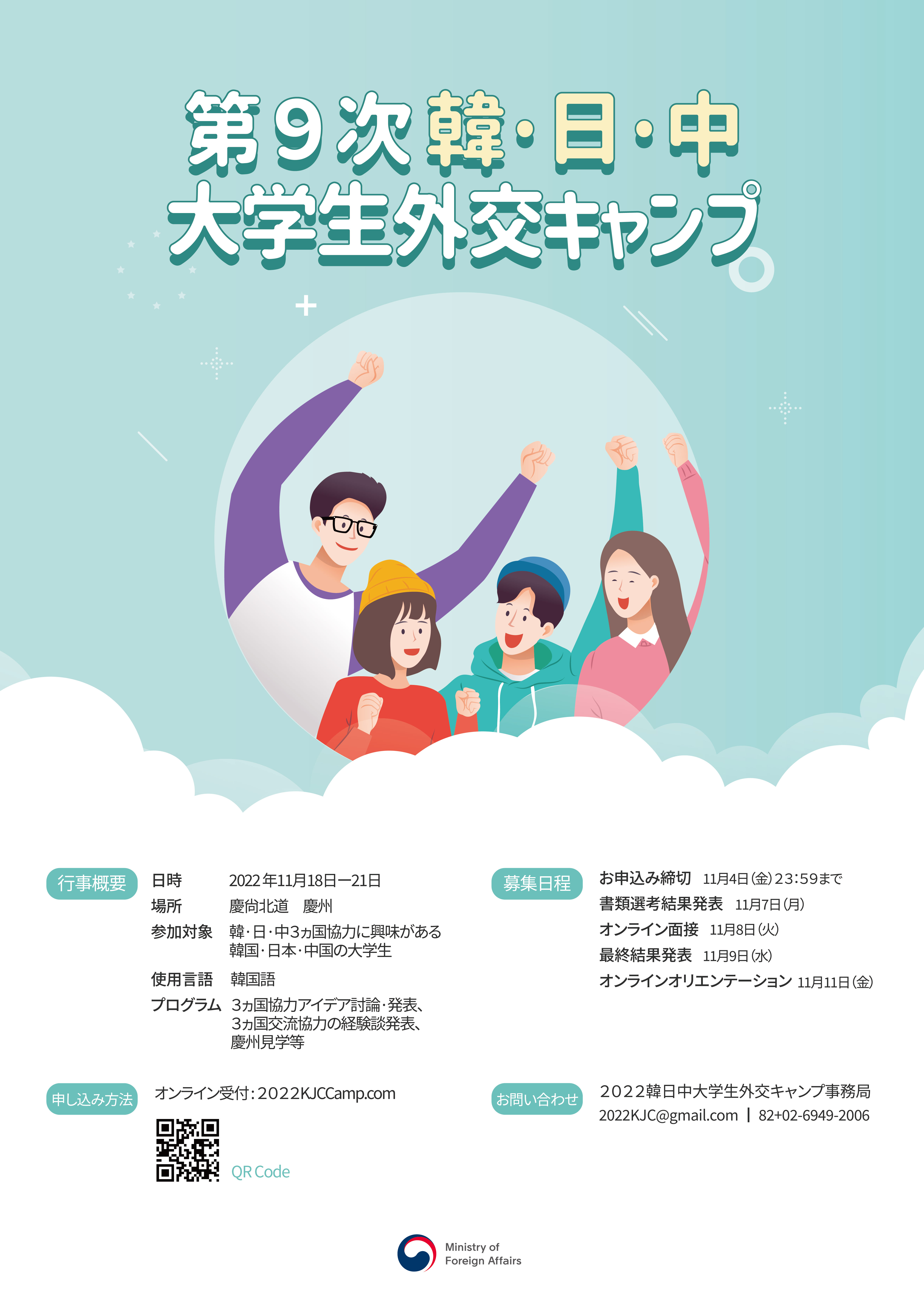 [ALL] 외교부 주관 [ 2022 제9차 한·일·중 대학생 외교캠프 ] 개최 안내