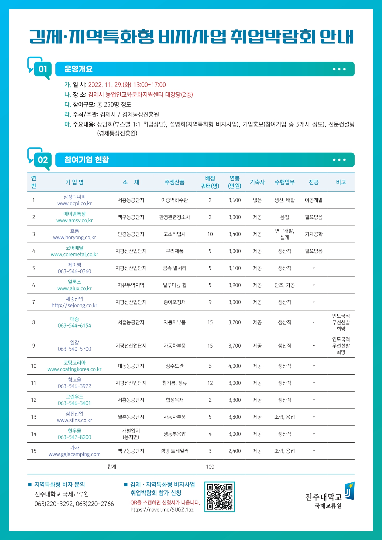 김제시(2차), 지역특화형 비자사업 취업박람회 개최(1월 12일)